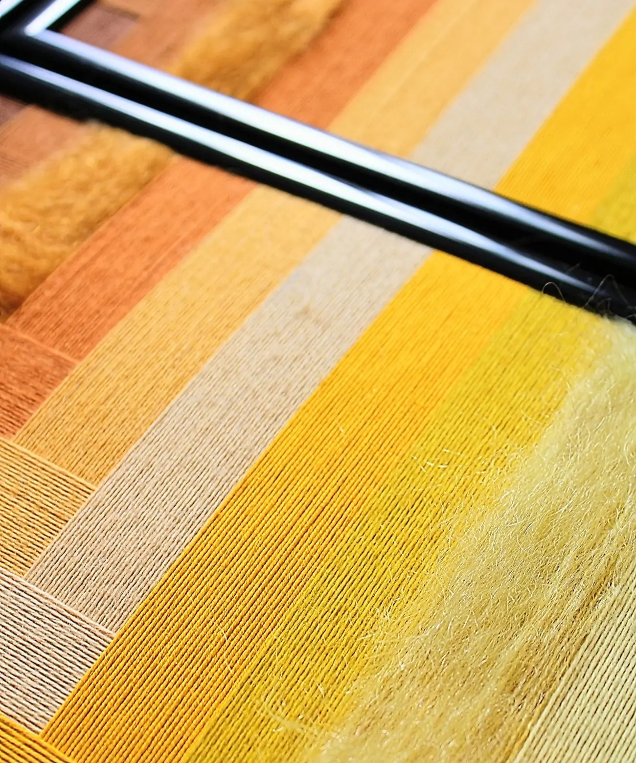 Les fibres se mêlent dans un camaïeu de jaunes intenses, rappelant la douceur d’une lumière d’été et l’énergie éclatante des journées solaires. »