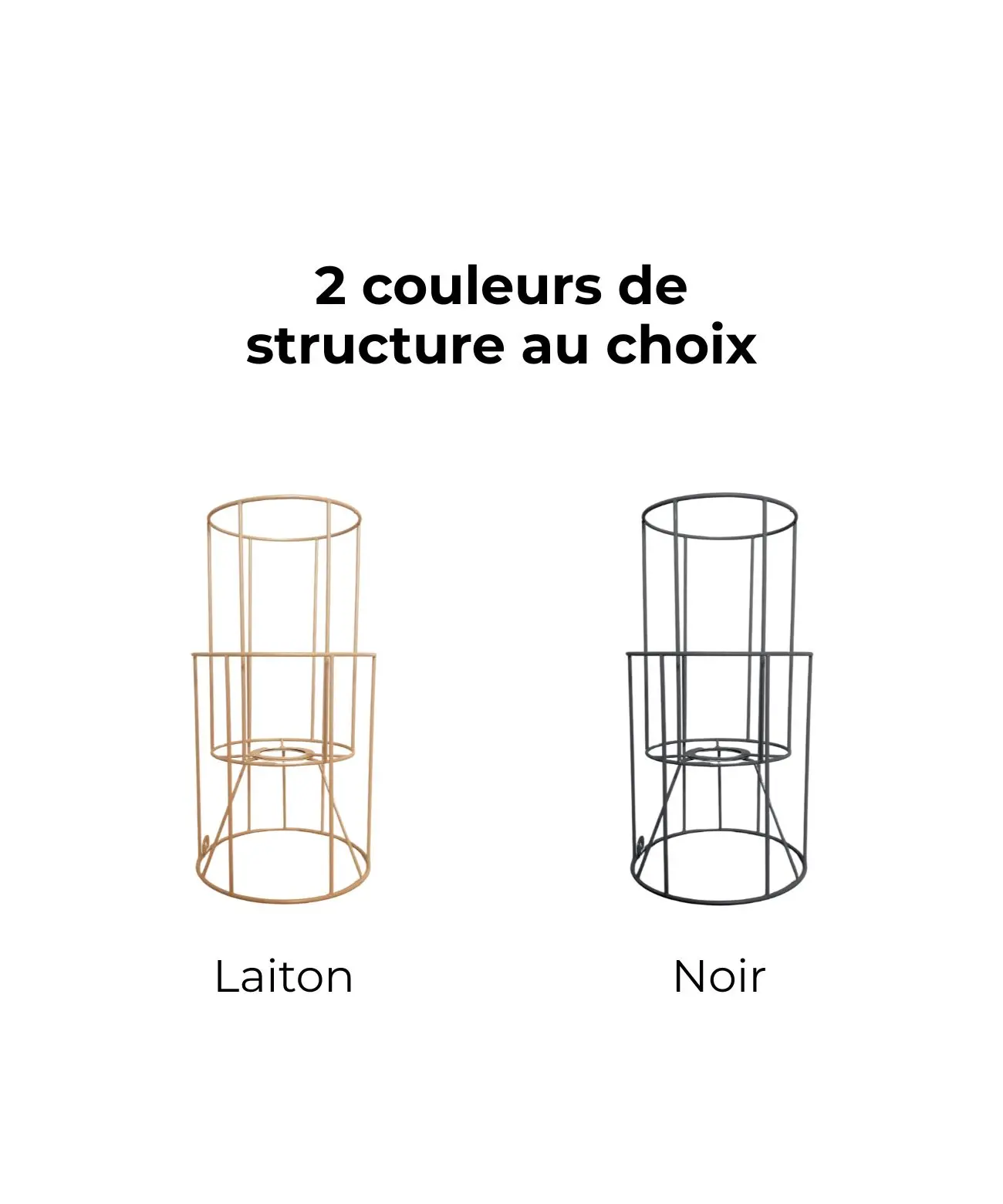 Choisissez la couleur de votre structure, puis les couleurs de votre fil (parmi celles proposées sur le nuancier) et enfin celle de votre cordon d’alimentation.